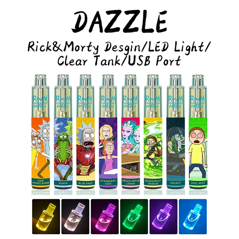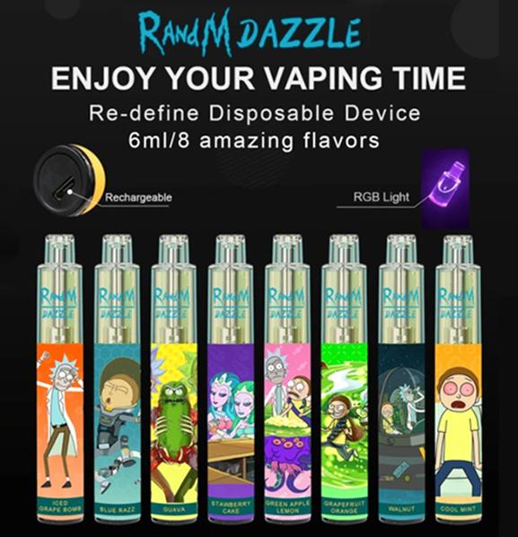 RandM Dazzle is a disposable vape device with popular clear tank and colorful RGB light. It contains 6ml 5% nicotine salt e-juice and vape up to 2000 puffs. There are 8 flavors for you to choose. The RGB light makes it the coolest disposable device plus it comes with a rechargeable usb port at the buttom of the device, which gurantte you finish the last drop of the ejuice in the tank and light glowing all the time.